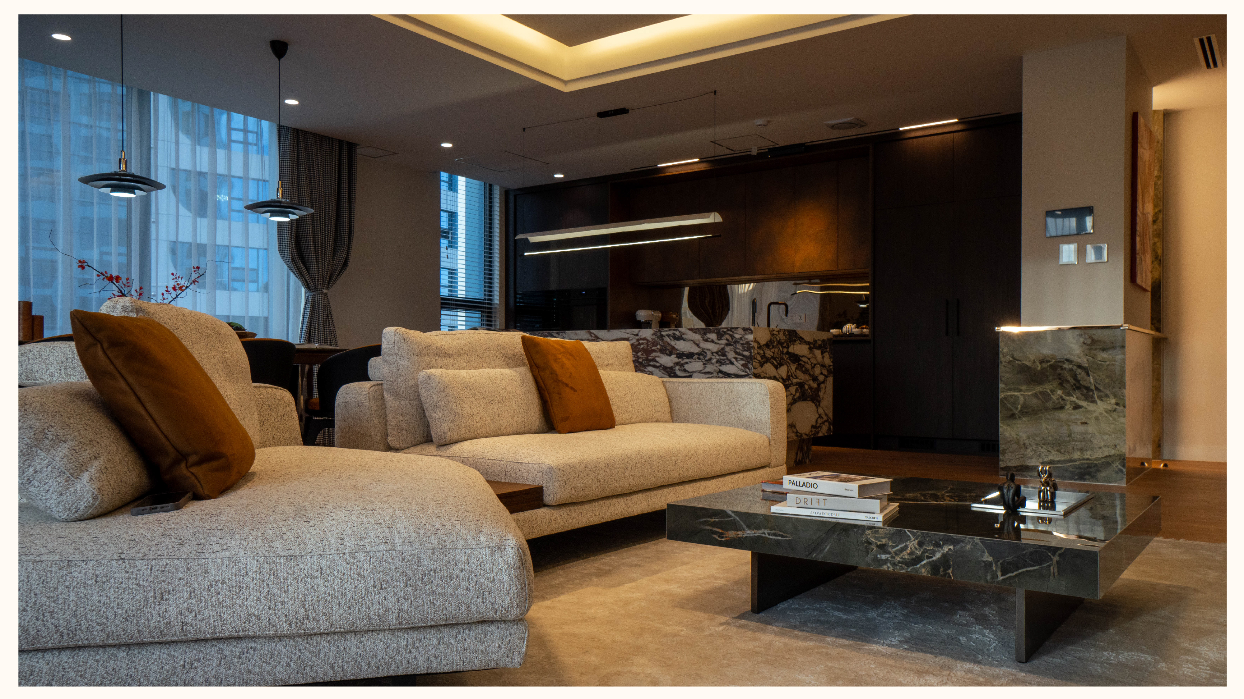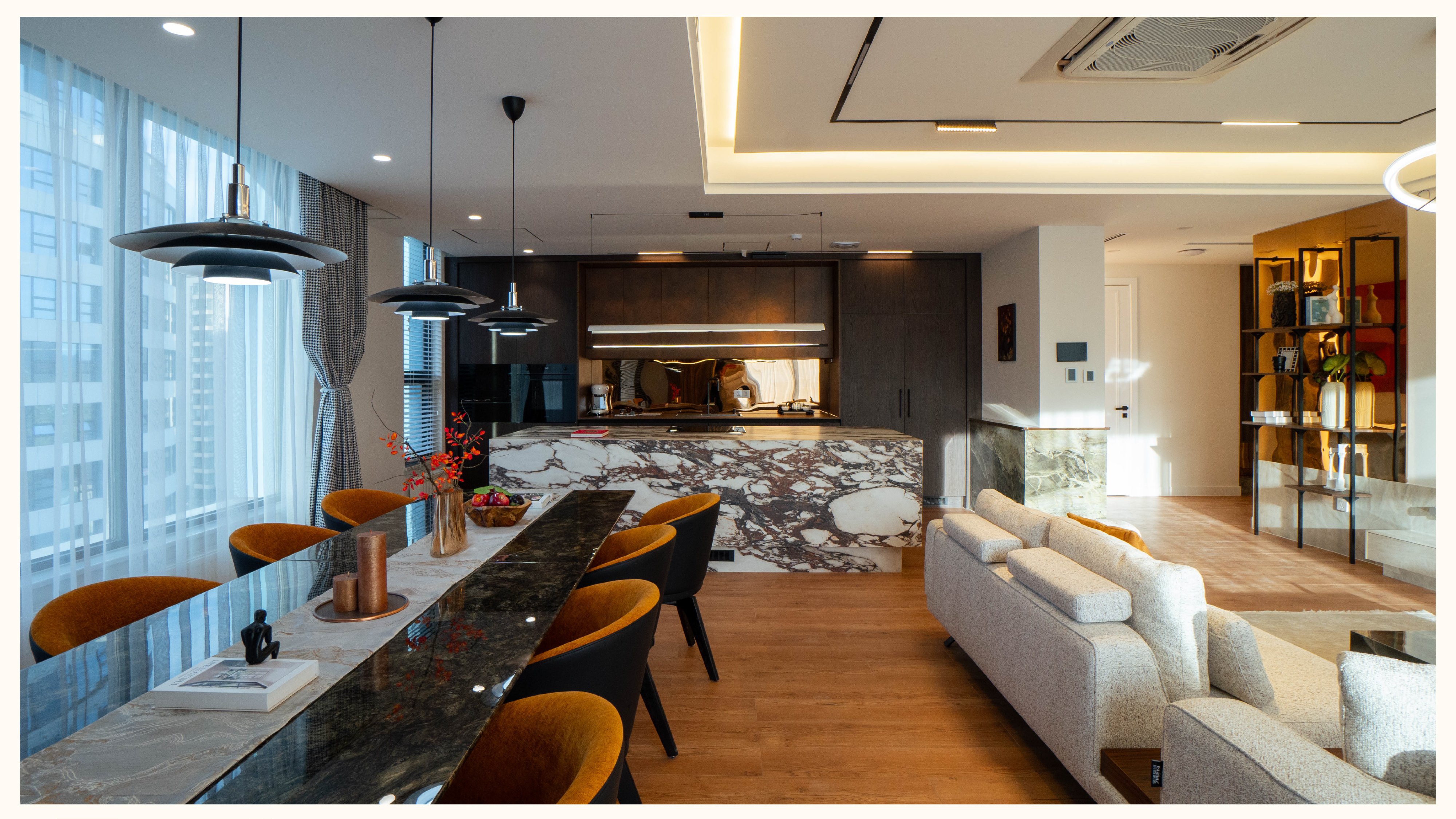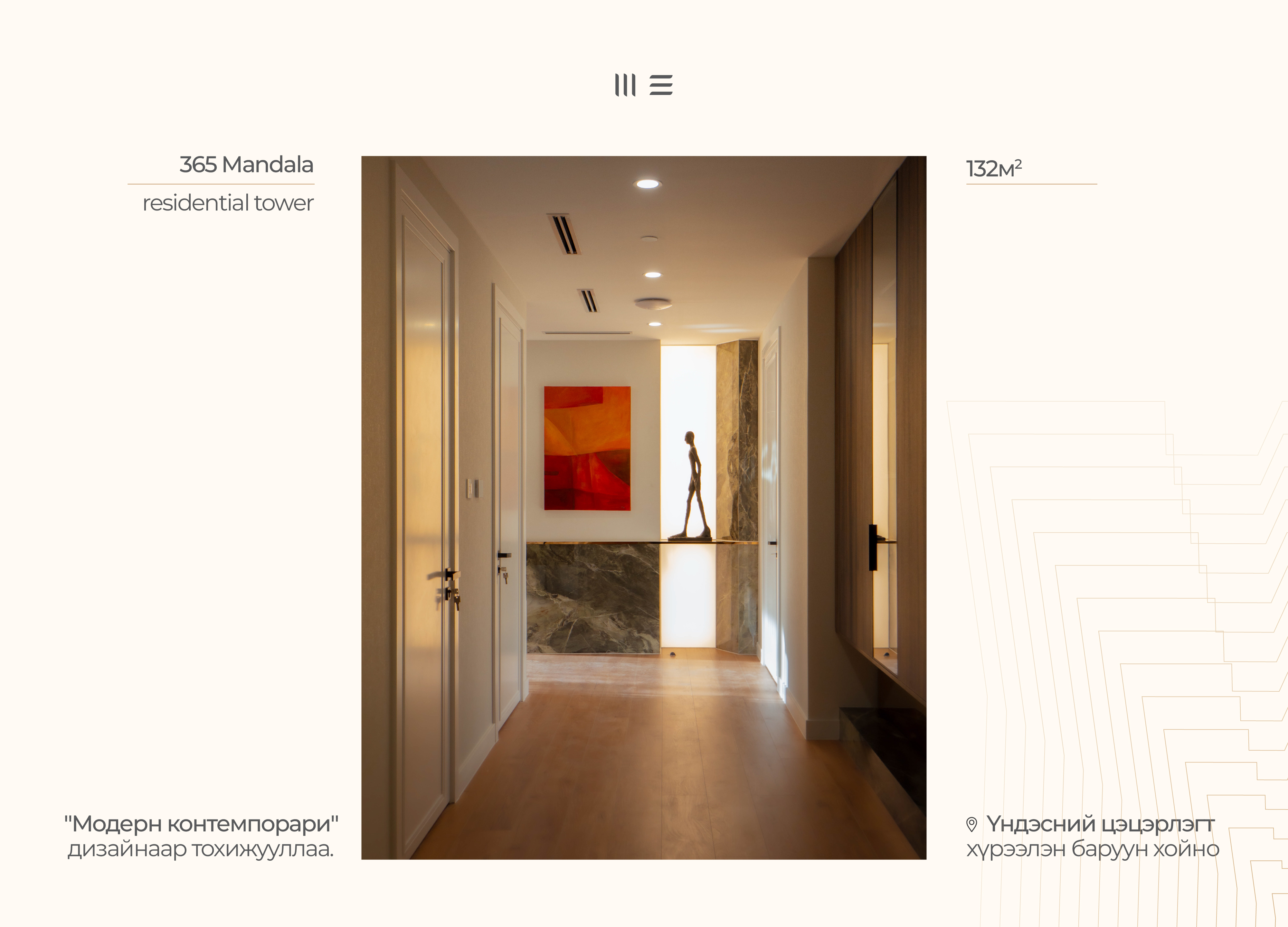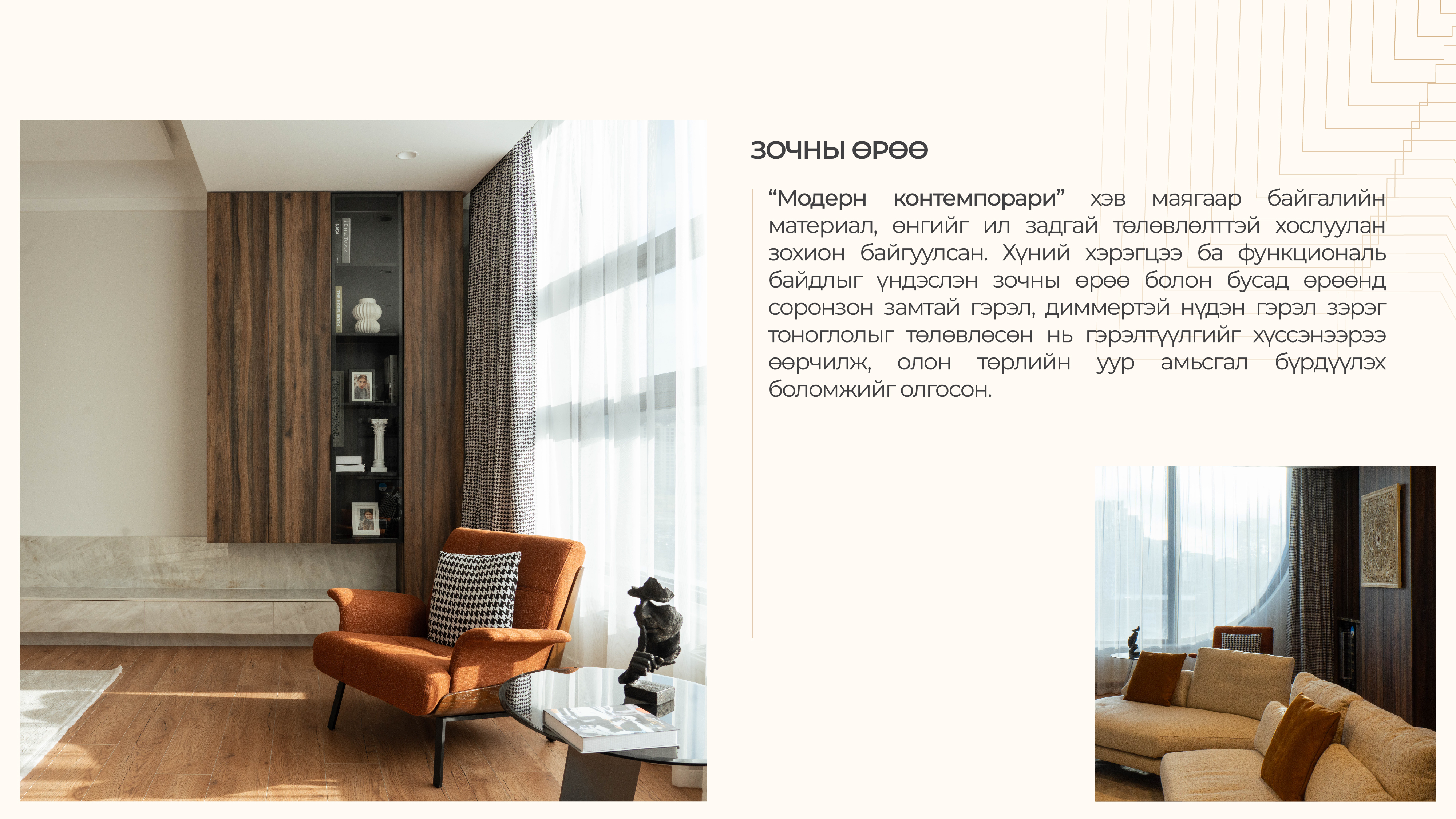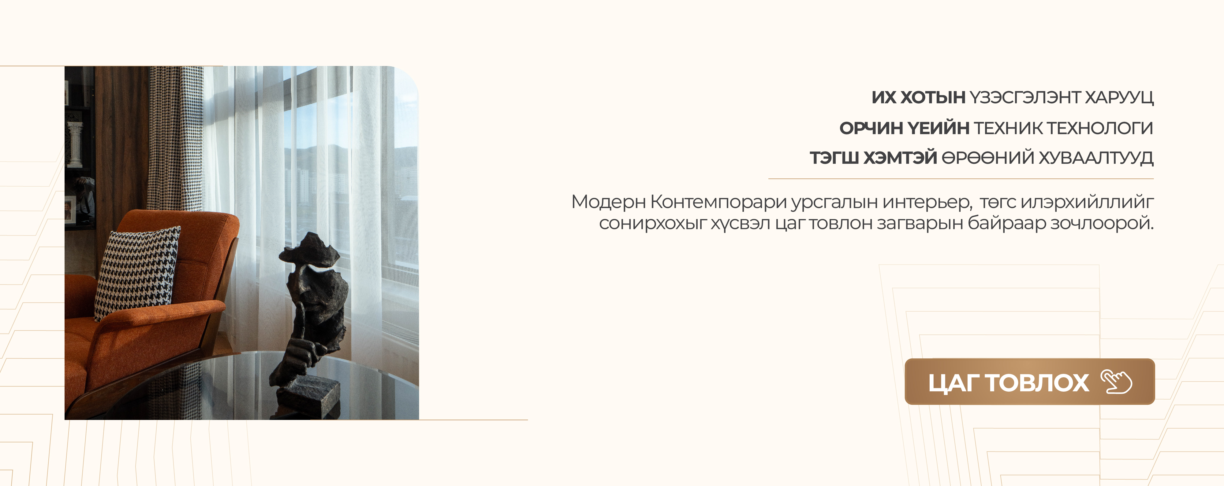 Өндөр зэрэглэлийн орон сууцны орчин үеийн архитектур, интерьерийн хослол.