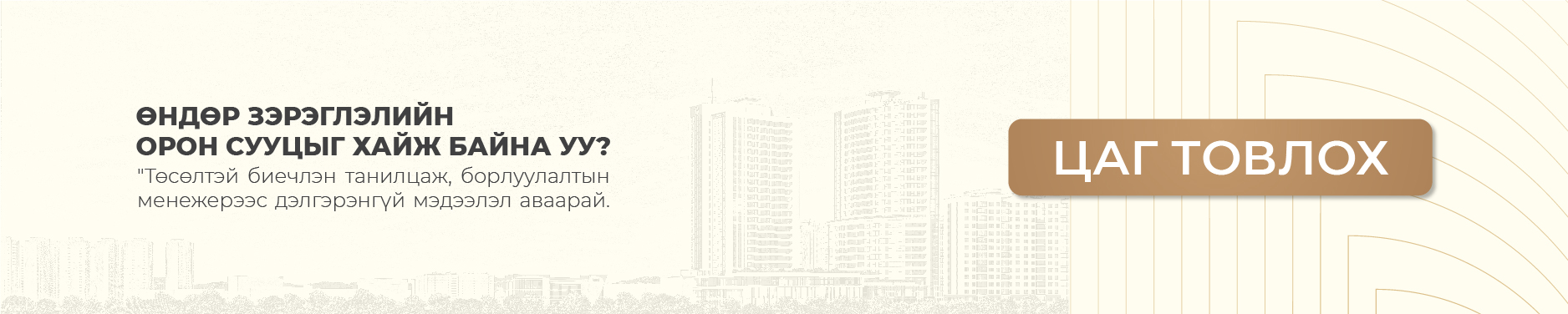 Хэрвээ та борлуулалтын оффисоор зочлон орон сууцны талаар мэдээлэл авахыг хүсвэл уулзалтын цаг товлоорой.